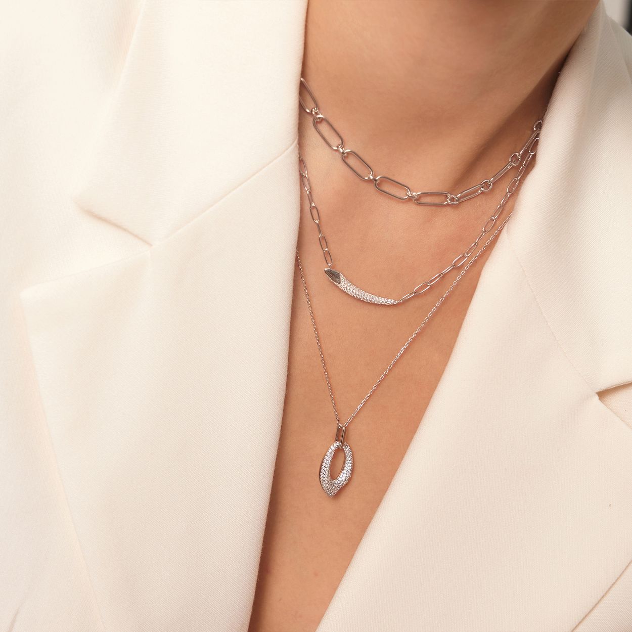 Update je kettinglagen met een klassieke staafketting met sprankelende details. Deze glinsterende pavéstaaf van zirkonia is gemaakt van gerhodineerd sterlingzilver en is bevestigd aan een zilveren schakelketting met een verstelbare sluiting voor de perfecte pasvorm. Style de jouwe met de andere sieraden van Ania Haie. Voor elke vrouw de perfecte sierlijke en chique look.