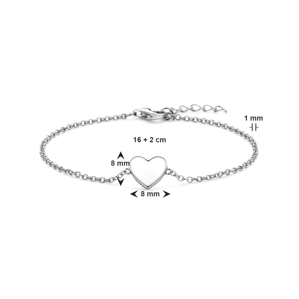 Gerhodineerd 925 zilveren armband uitgevoerd met een hart en wit emaille. De armband heeft een draaglengte van 16cm met 2cm extensie. Uitgevoerd met karabijn sluiting. De schakelbreedte is 1mm.