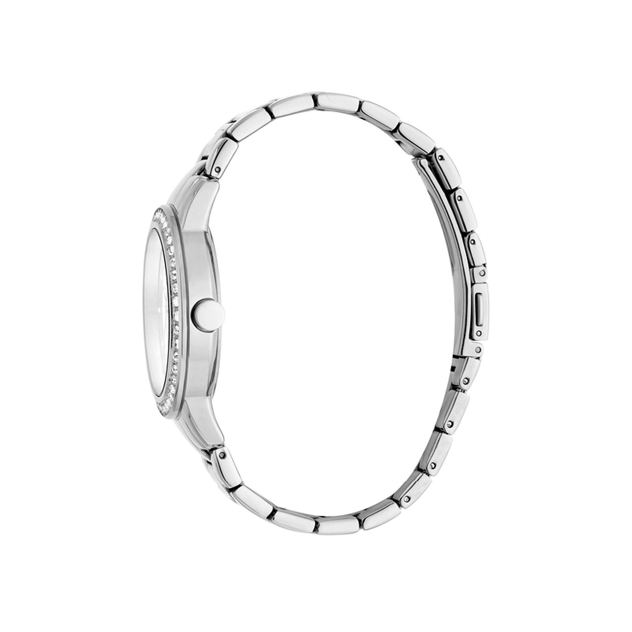- Zilverkleurige stalen horlogekast bezet met stenen