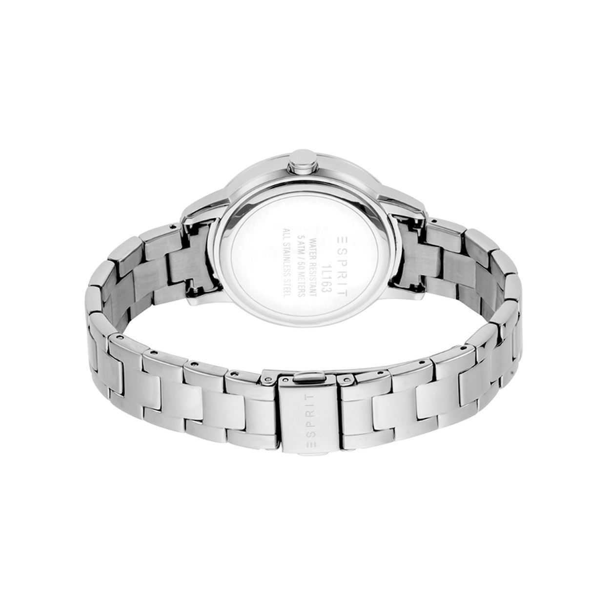 Dit dameshorloge uit de Harmony serie van Esprit heeft mineraalglas, een zilverkleurige wijzerplaat met steentjes en een zilverkleurige stalen horlogekast met een kastdiameter van 36 mm. De zilverkleurige band van het horloge is van staal en kan op maat worden gemaakt door er schakels uit te halen met een horlogeband inkortset.