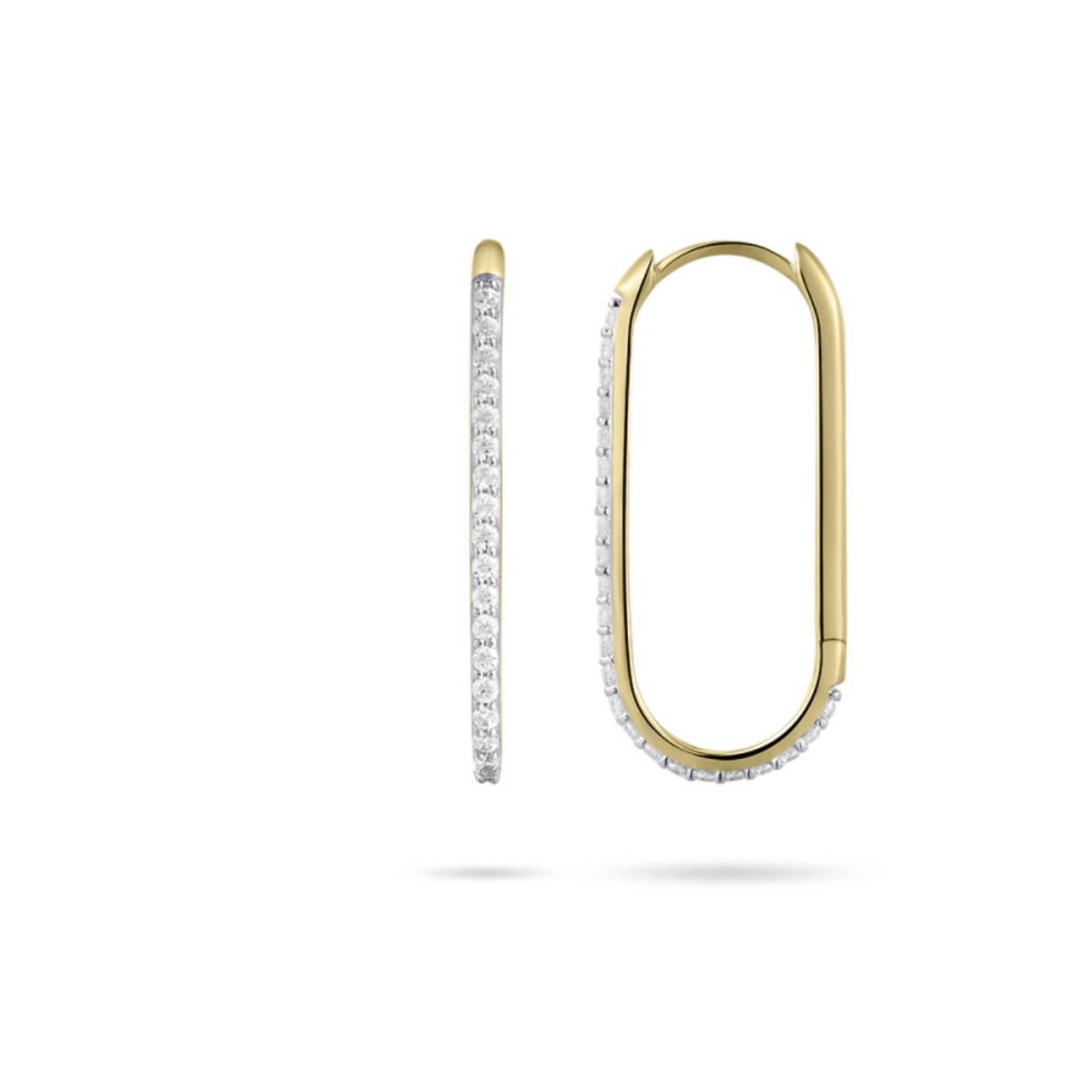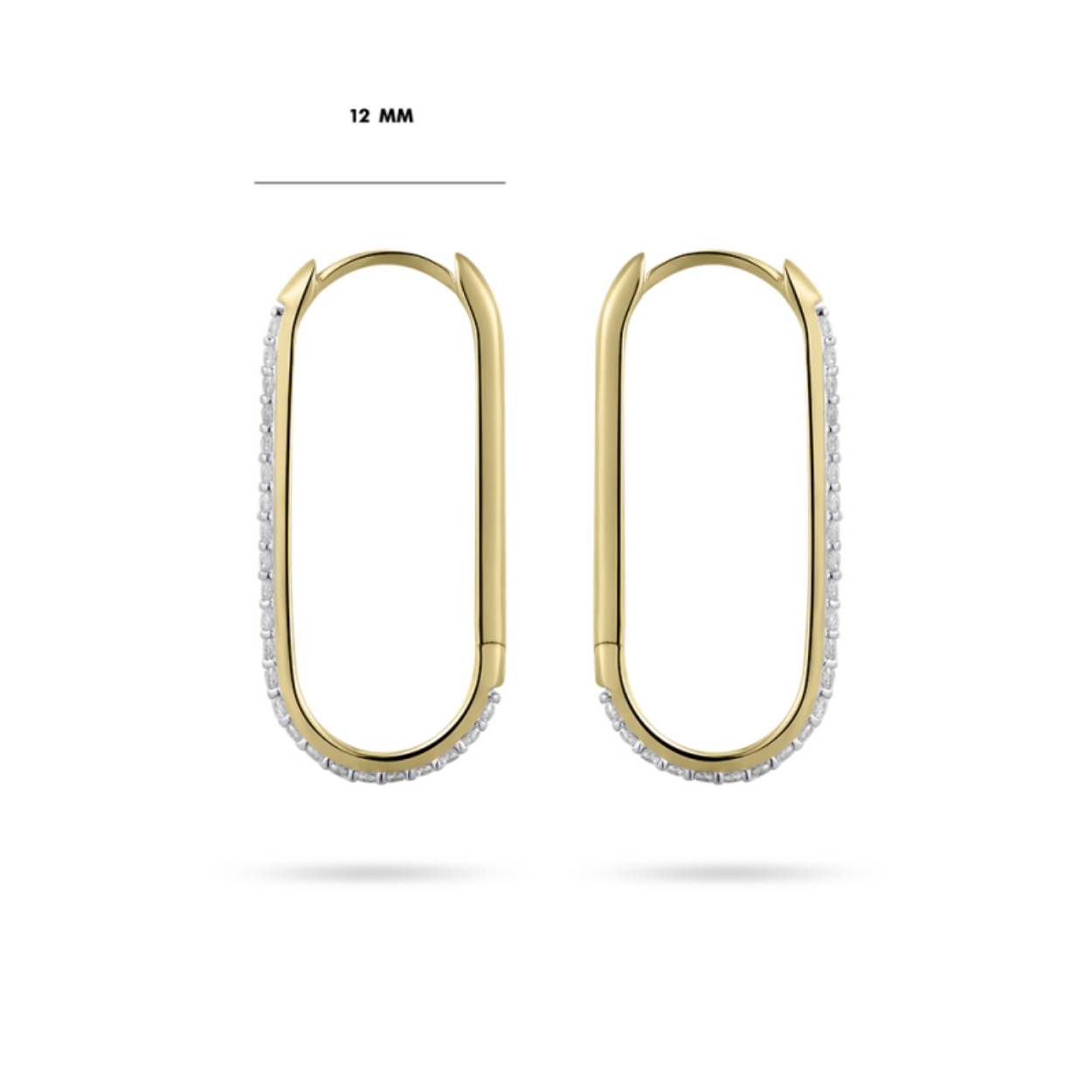 14k gouden ovale oorringen met zirkonia. De oorringen zijn voorzien van een scharniersluiting.
