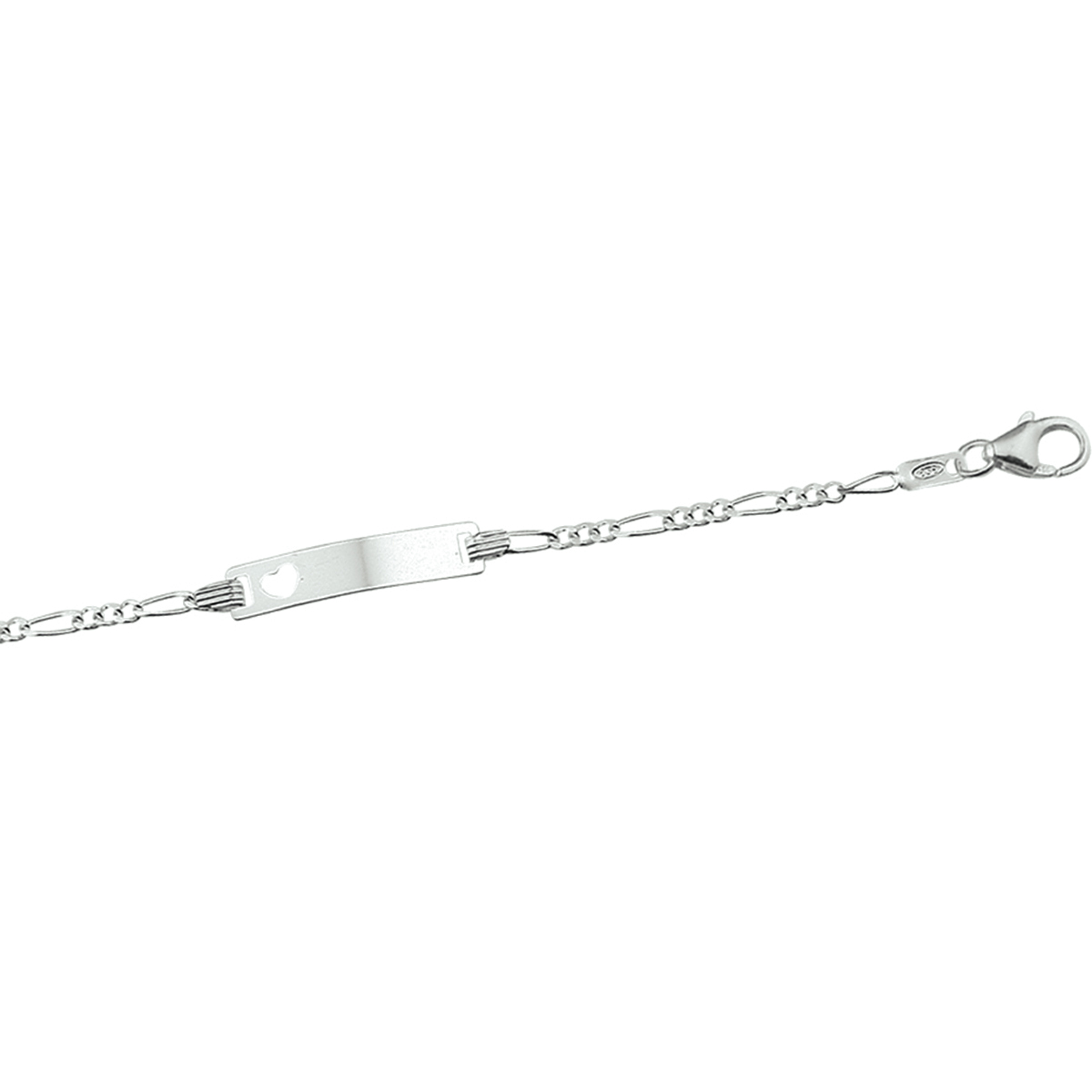 graveerarmband hart figaro plaat 4,2 mm 9 - 11 cm zilver gerhodineerd