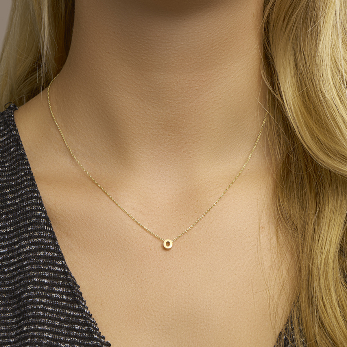 14k Geelgouden hanger uitgevoerd in de letter O. De hanger heeft een afmeting van 5.5x5.0mm.