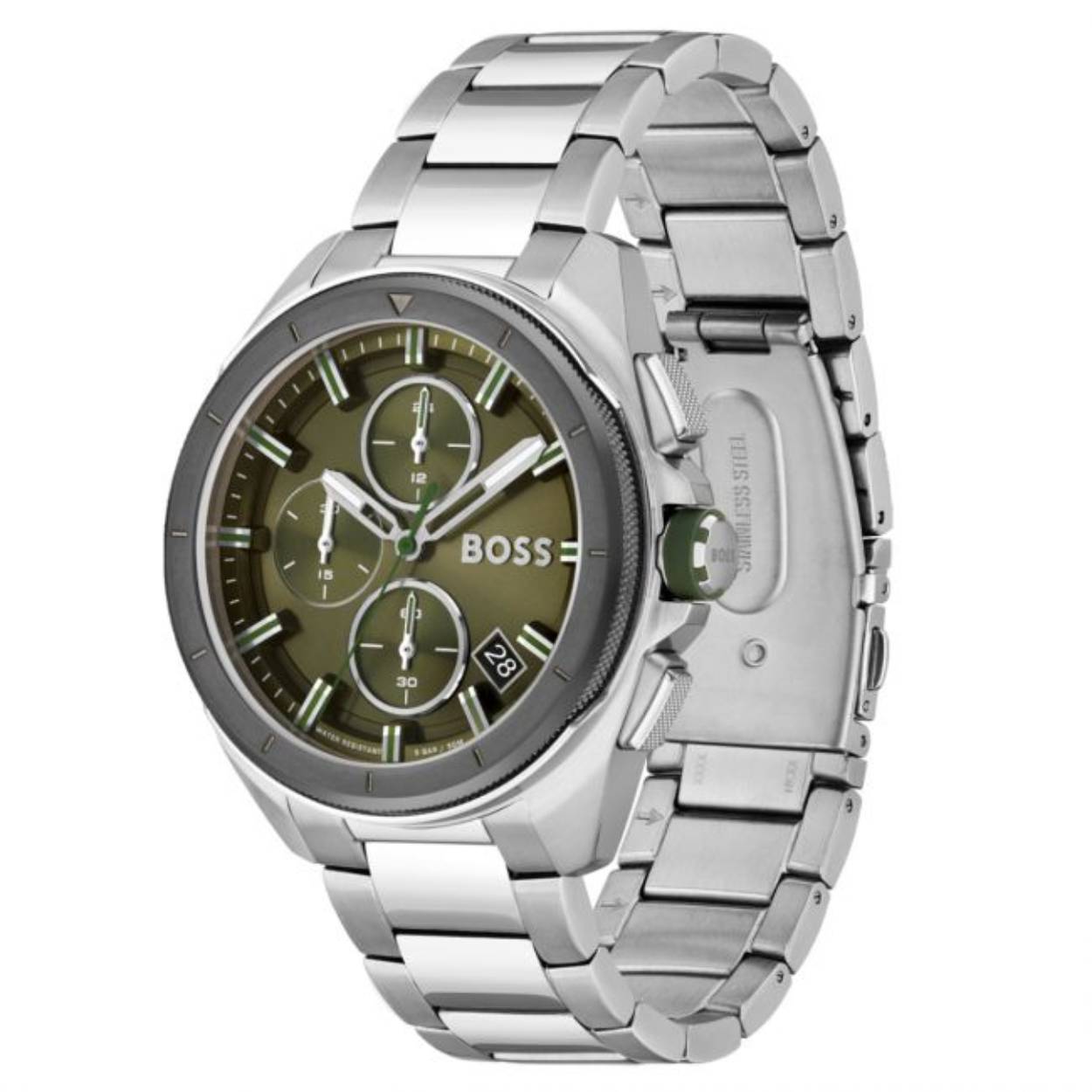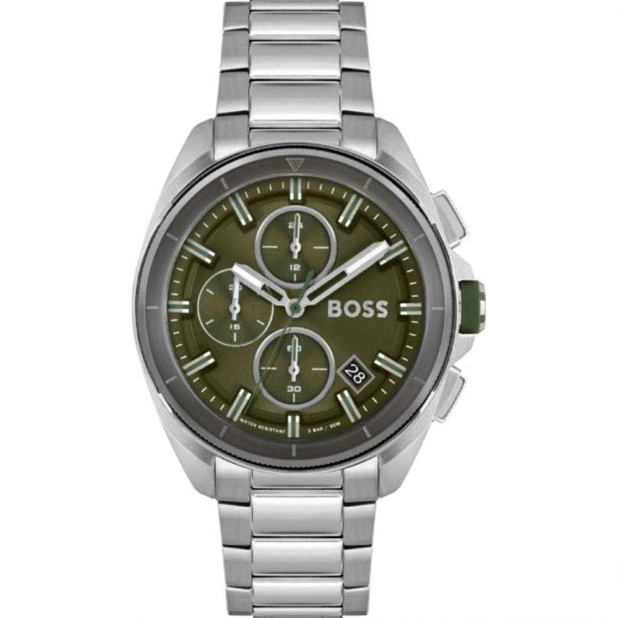 Hugo Boss maakt jou intens gelukkig met dit HB1513951 Volane 44 mm model. Dit stoere polsaccessoire voor heren valt soepel om jouw pols. Een edelstalen chronograaf met donkergroene wijzerplaat die tijd, datum, 24-uurs klok en stopwatchklokjes toont. Een indrukwekkend design met kast van 44 millimeter.