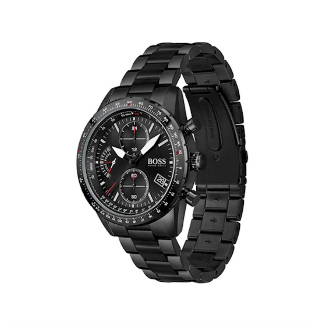 Dit mooie horloge van Hugo Boss de HB1513854 is een horloge met een quartz uurwerk. Het horloge heeft een diameter van 44 mm, en is 12 mm dik. De weergave van de tijd is analoog. Verder is het horloge voorzien van een mineraal horlogeglas. Het horloge is 5 bar (douchen) waterdicht, en heeft een band van roestvrij staal in de kleur zwart. Wij leveren het horloge met 2 jaar garantie.