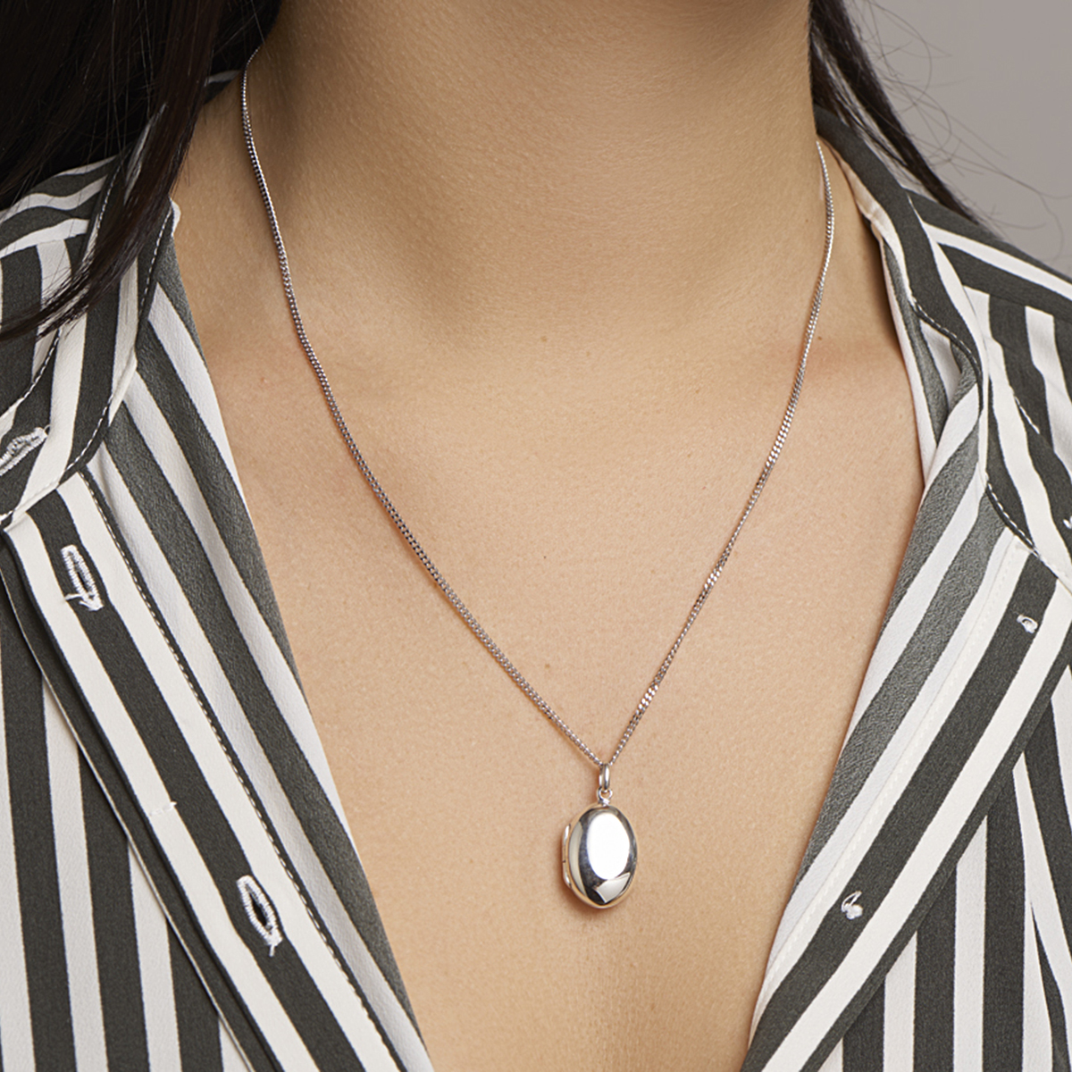 Zilveren medaillon. In het medaillon passen twee fotos.