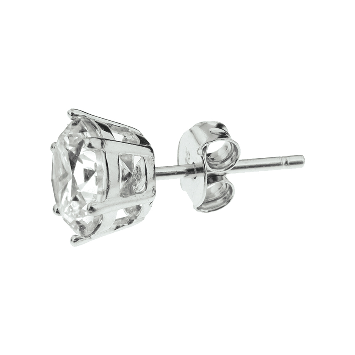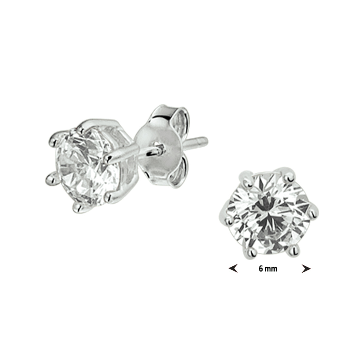 Beschrijving: Stijlvolle gerhodineerd zilveren oorknoppen uitgevoerd met  een briljant geslepen zirkonia in een chaton zetting en stevige poussette sluiting. De zirkonia steen heeft een afmeting van 6mm.