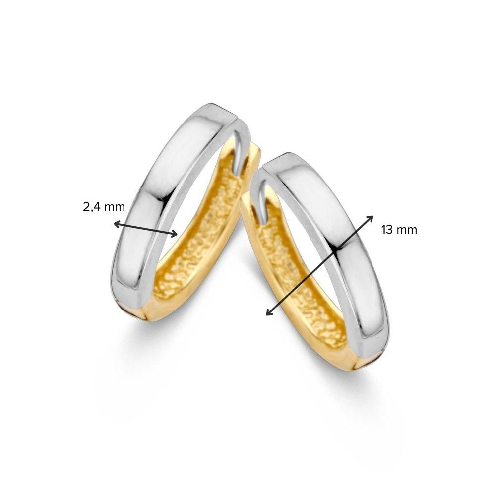 Bicolor wit- en geelgouden creolen.
