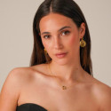 Zilver vergulden oorhangers met abstracte achterplaat en bloem vorm, gezet met gekleurde toermalijn.