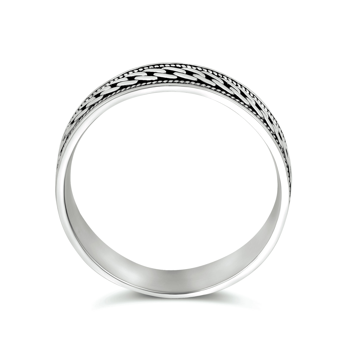 Geoxideerd 925 zilveren ring. De ring heeft een breedte van 6mm.