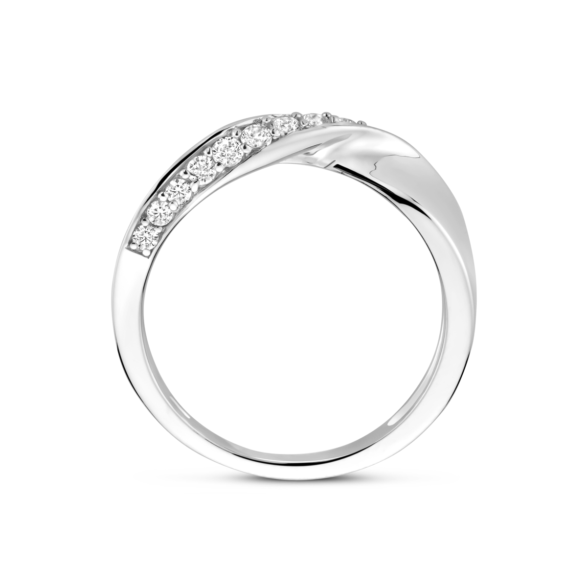 Gerhodineerd 925 zilveren ring uitgevoerd met zirkonia. De ring heeft een breedte van 5.5mm.