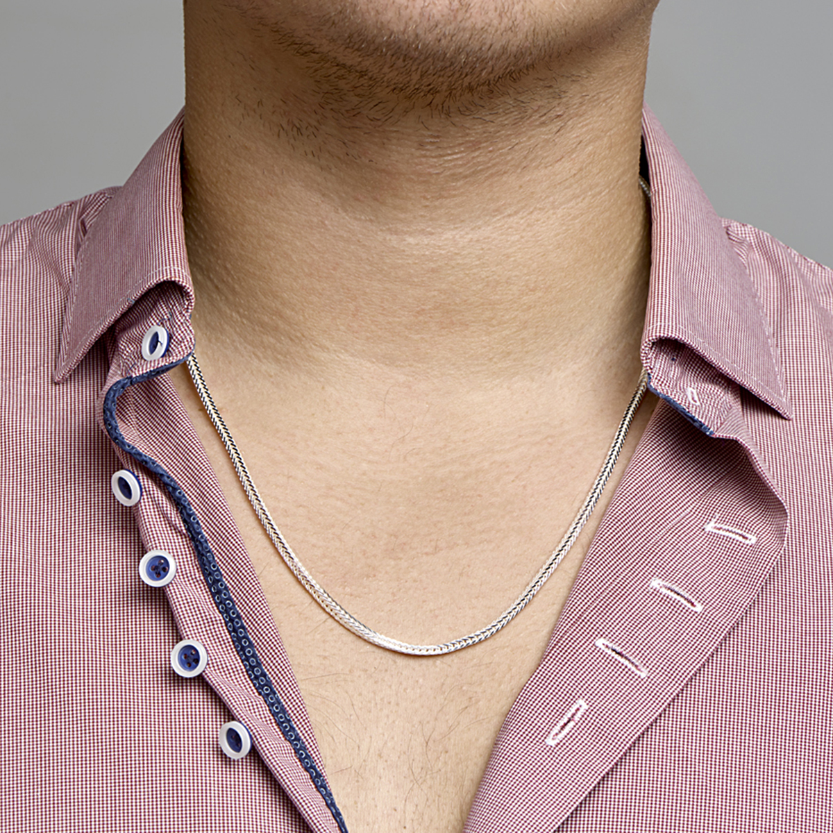 Zilveren collier met een vossestaart schakel. Het collier heeft een schakelbreedte van 2.5mm en een draaglengte van 60cm. Uitgevoerd met een karabijn sluiting.